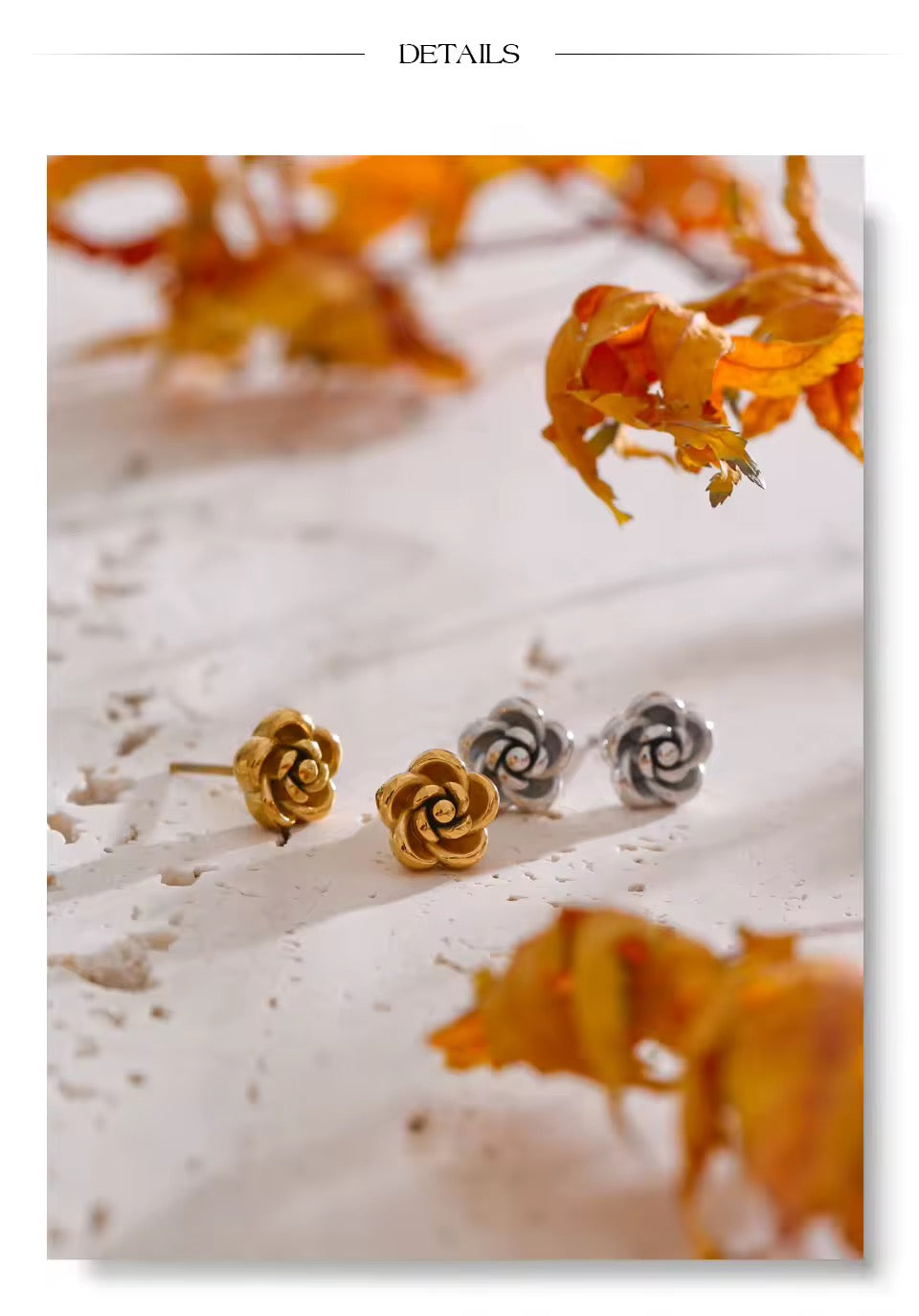 Chic Stainless Steel Rose Flower Chain Necklace Bracelet Earrings Set Gold & Platinum PVD Waterproof Plated Daily Jewelry