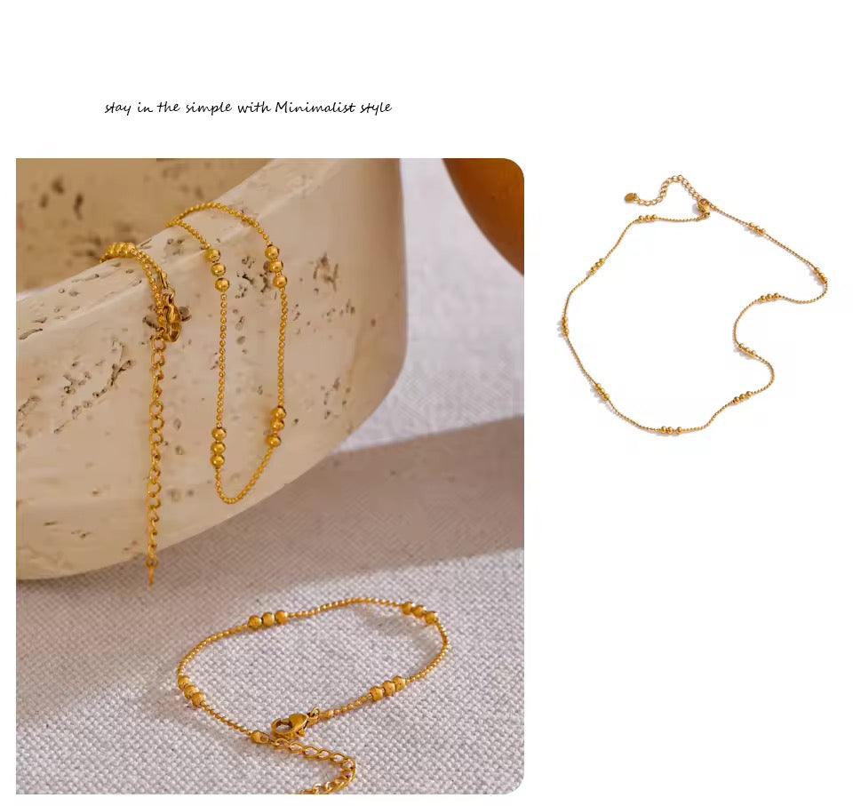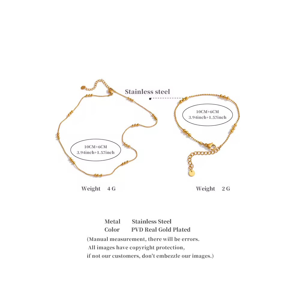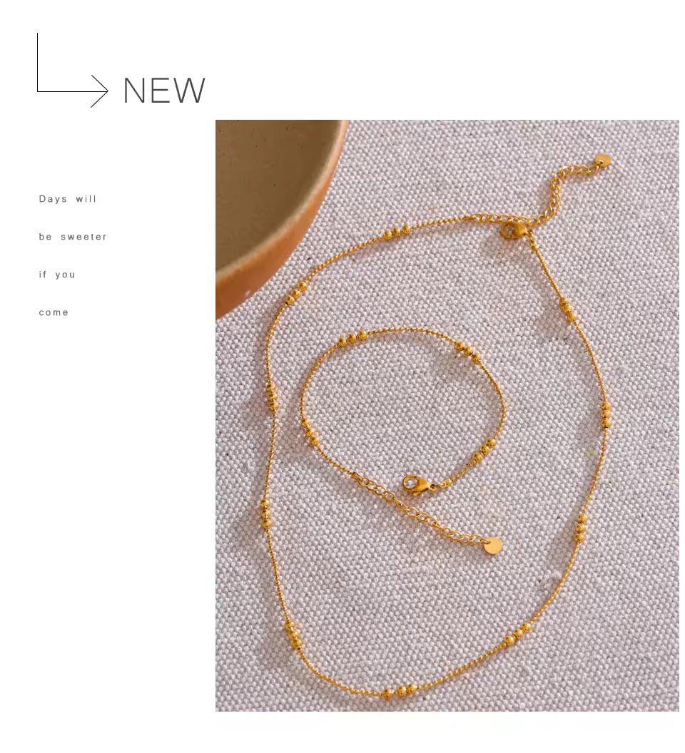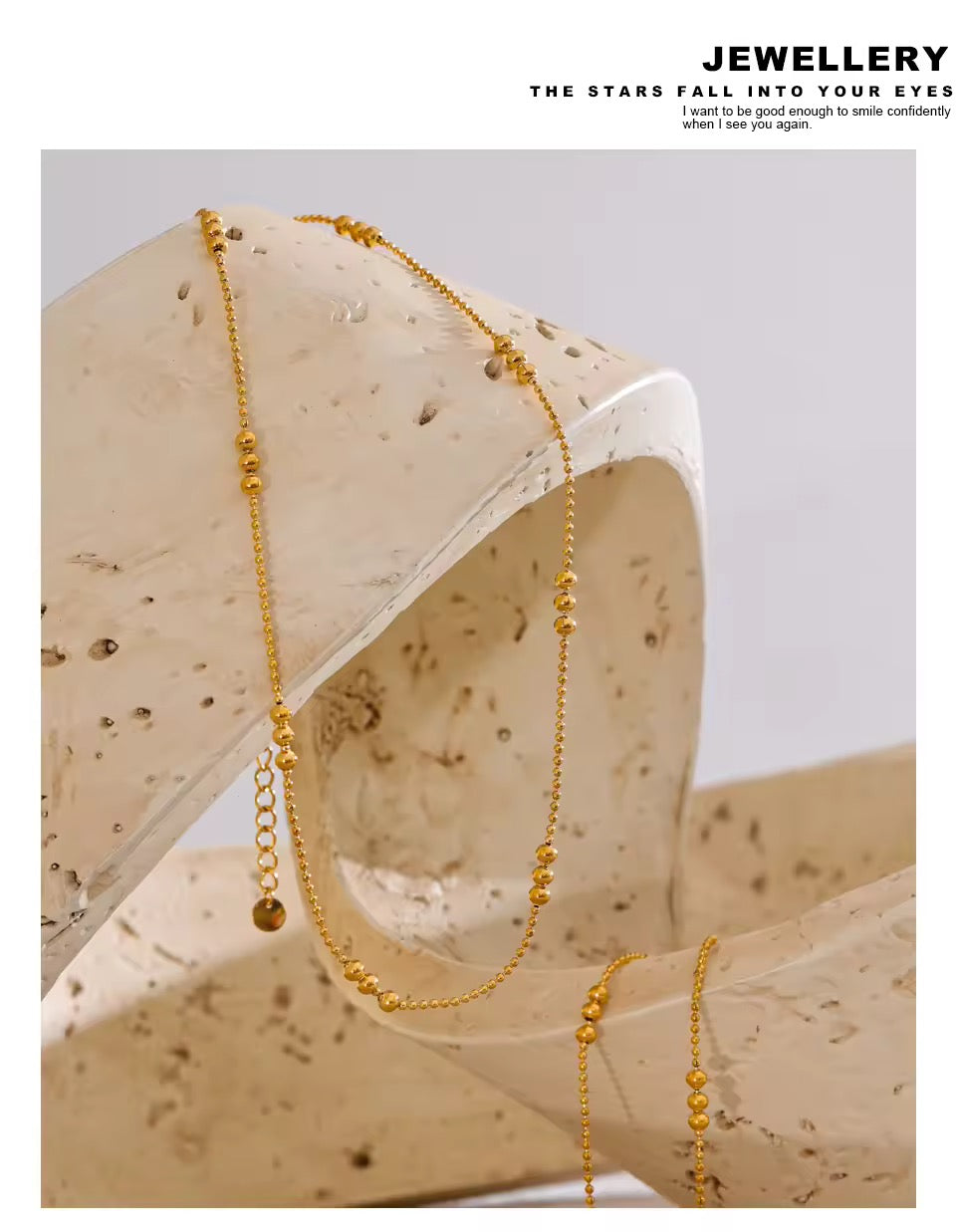 Stainless Steel Beads Chain Chic Fashion Necklace Bracelet Bangle 18K PVD Plated Waterproof Jewelry