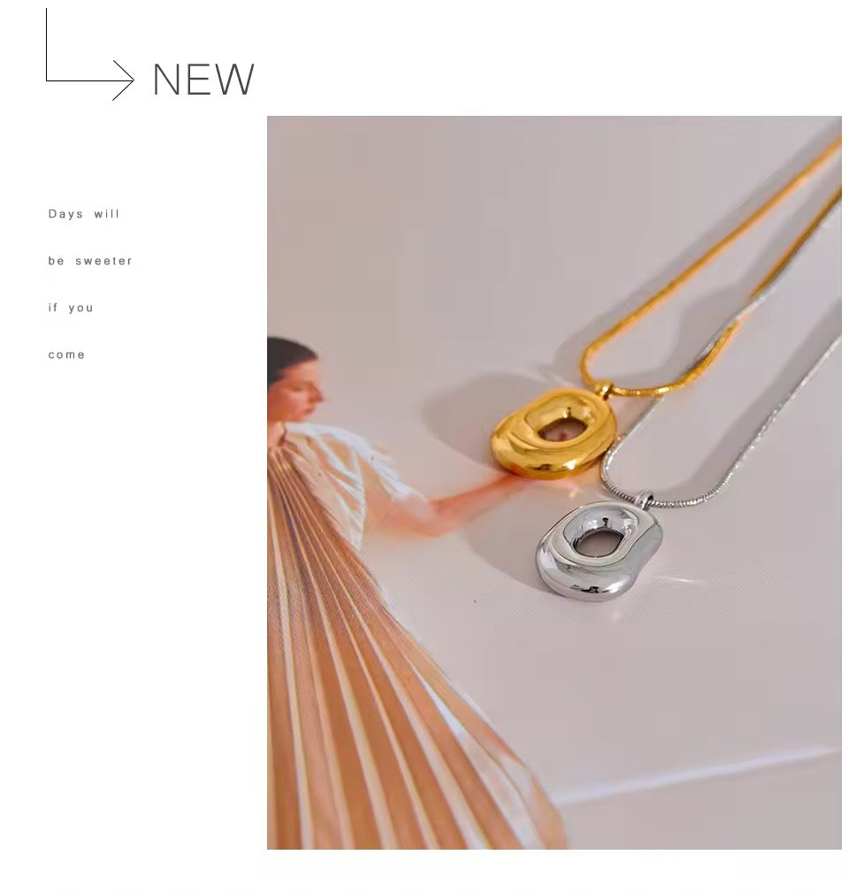 Stainless Steel Geometry Hollow Pendant Necklace Fashion Metal Charm Waterproof Cast Pvd Plated Jewelry