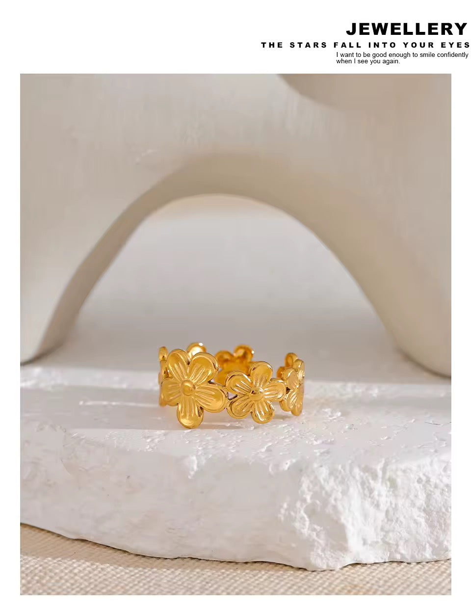 Thin Plant Flower Adjustable Cheap Open Ring Water Resistant Metal Stainless Steel Trendy Jewelry for Women